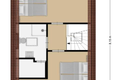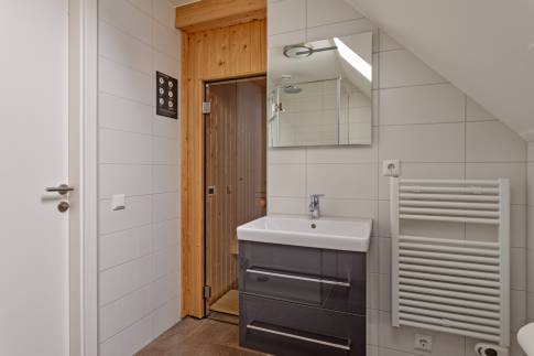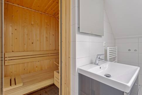 Op de eerste verdieping zijn twee slaapkamers aanwezig en een badkamer. In deze badkamer is tevens de traditionele sauna aanwezig.