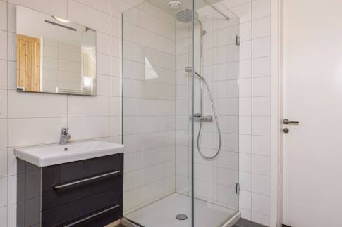 Op de begane grond is ook een slaapkamer met badkamer ensuite aanwezig. Daarnaast vind je een apart toilet, een trapkast en de technische ruimte op de begane grond.