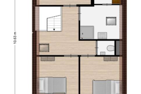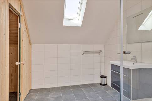 Op de eerste verdieping zijn 3 slaapkamers bereikbaar via de ruimte overloop. Ook vind je hier weer een apart toilet en een badkamer met sauna en douche.