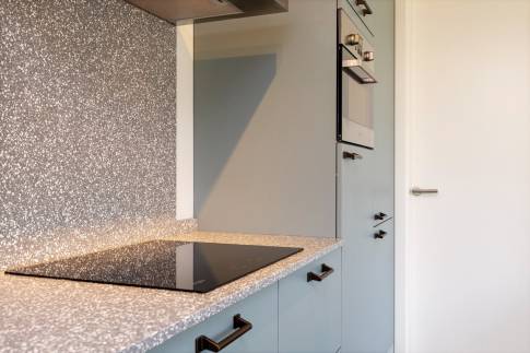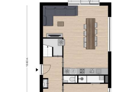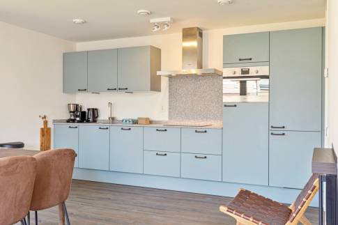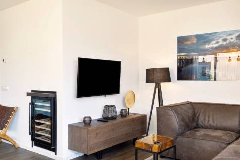 Via de ruime hal krijg je onder andere toegang tot de ruime open keuken met aangrenzend de woonkamer. De keuken is voorzien van diverse inbouwapparatuur en separaat is een wijnklimaatkast aanwezig. Zo kun je na een heerlijke dag op het Veerse Meer genieten van jouw wijntje die op perfecte temperatuur is.