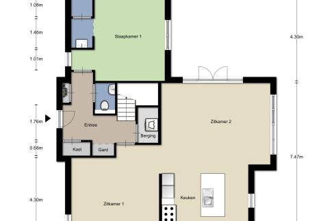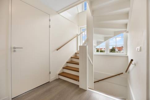 Via de stijlvolle entree betreedt u een royale hal die direct een gevoel van ruimte en kwaliteit uitstraalt. Vanuit hier heeft u toegang tot de meterkast, een separate stookruimte met cv-ketel en doorstroomboiler, het gastentoilet, een handige inpandige berging met witgoedaansluitingen, de trapopgang, de lichte woonkamer én een slaapkamer op de begane grond.