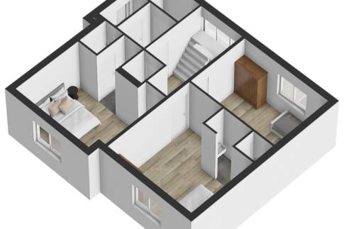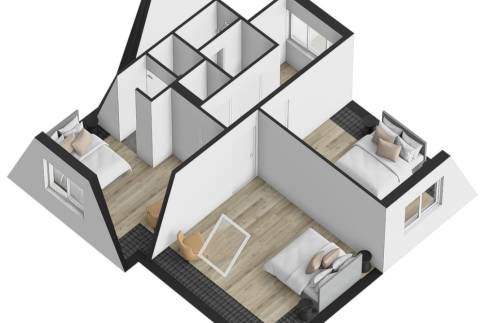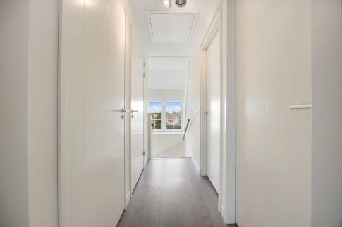 Ook de tweede verdieping is via een vaste trap bereikbaar en biedt verrassend veel ruimte. De overloop geeft toegang tot maar liefst drie volwaardige slaapkamers, stuk voor stuk ruim en licht.