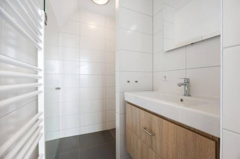 Eén van de slaapkamers beschikt over een eigen badkamer en suite, voorzien van een moderne inloopdouche met draingoot en een strak wastafelmeubel – ideaal als extra gastenverblijf of privévertrek. Daarnaast vindt u op deze verdieping een separate toiletruimte én een extra badkamer met inloopdouche en wastafelmeubel, zodat ook hier optimaal comfort en functionaliteit samenkomen.