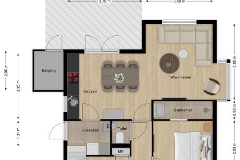 – Ruime terrasoverkapping en terrasverwarmer aanwezig
