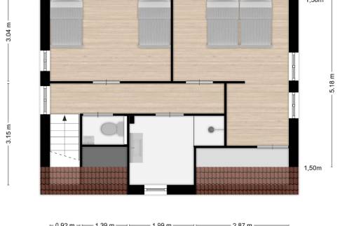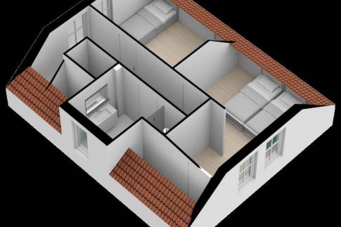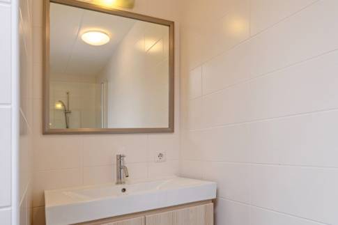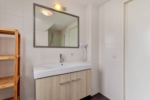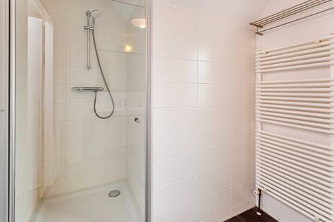 Middels de trapopgang bereik je de overloop die toegang geeft tot 2 ruime slaapkamers, een separaat toilet en een moderne badkamer. In deze badkamer bevindt zich een inloopdouche, een wastafel en handdoekradiator. In de grootste slaapkamer vinden we tevens nog een eigenarenkast.