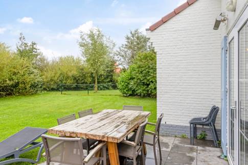 Rondom de woning ligt een verzorgde tuin. De tuin is op het noordwesten georiënteerd en is volledig omheind. Aan de achterzijde van de woning heb je dankzij een natuurlijke afscheiding je privacy op het fijne terras. De achtergevel is voorzien van een terrasheater. Op de oprit is plaats voor twee voertuigen en aangrenzend hieraan bevindt zich een berging voor fietsen.