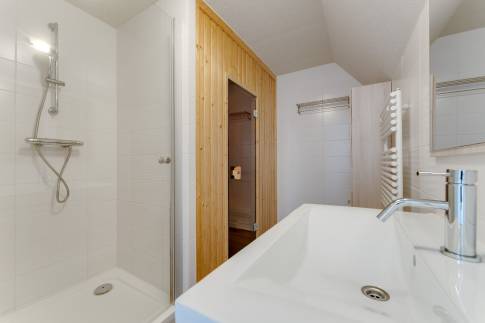 De tweede badkamer beschikt over een douche, wastafel en een luxe sauna, waar je na een lange dag heerlijk kunt ontspannen. De derde badkamer is voorzien van een comfortabel ligbad en een wastafel, perfect voor een rustgevend badmoment. De vierde badkamer heeft een douche en wastafel, zodat iedereen van voldoende privacy en gemak is verzekerd.