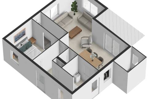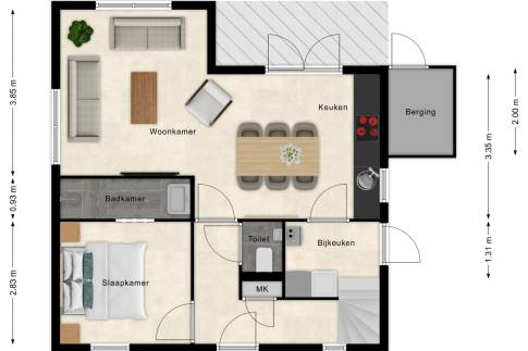 De woonkamer is heerlijk licht, sfeervol en vormt samen met de open keuken het hart van de woning. Dankzij de vloerverwarming op de gehele benedenverdieping geniet je hier altijd van een aangename temperatuur en extra comfort. De moderne keuken sluit naadloos aan op het woongedeelte en is voorzien van hoogwaardige inbouwapparatuur, ideaal voor kookliefhebbers. Aansluitend vind je een praktische bijkeuken met aansluitingen voor wasmachine en droger, én een extra buitendeur – handig voor bijvoorbeeld tuinaccessoires of natte jassen.