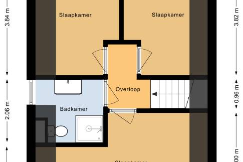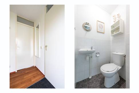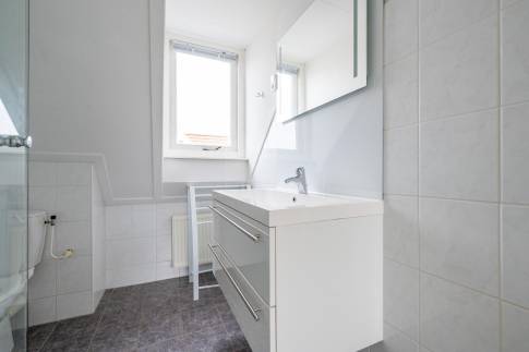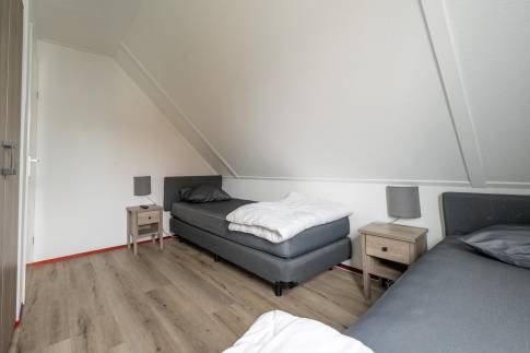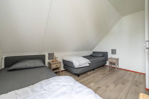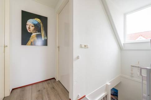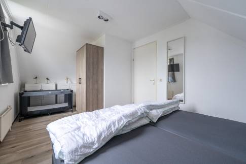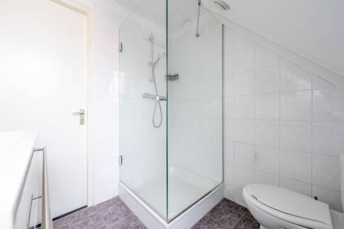 Via de trap in de woonkamer bereik je de verdieping, waar zich drie smaakvol ingerichte slaapkamers bevinden. De badkamer is netjes afgewerkt en voorzien van een douche, wastafel en toilet.
