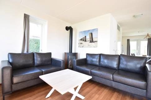 Bij het betreden van de living valt direct de mooie houtkleurige vloer op die over de gehele woonlaag is doorgetrokken. Samen met de lichtkleurige wanden en de zorgvuldig uitgezochte inrichting geeft deze ruimte een sfeervolle uitstraling. De meeste ramen zijn voorzien van ventilatieroosters waardoor u dag en nacht deze ruimte kunt ventileren. De aanwezige centrale verwarming en de sfeervolle houtkachel zorgen in de koudere tijd van het jaar voor een behaaglijke warmte.