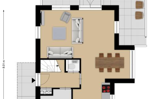 Buiten is het optimaal genieten op de overdekte veranda – de ideale plek voor een rustig ontbijt of een ontspannen avond met een goed boek. Parkeren kan eenvoudig op eigen perceel, wat extra gemak biedt.