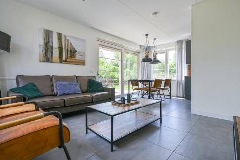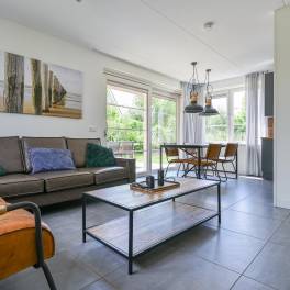 Stap binnen in deze lichte en comfortabele vakantiewoning, gelegen op een royaal perceel op het populaire Beach Resort Nieuwvliet-Bad. Al bij binnenkomst valt de ruimte en het verzorgde afwerkingsniveau op. De royale hal geeft toegang tot het separate toilet, de meterkast, de trapopgang en leidt je naar de gezellige L-vormige woonkamer – een uitnodigende ruimte waar ontspanning centraal staat.