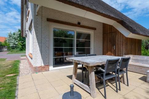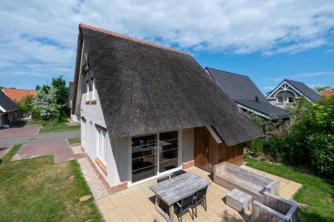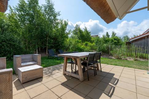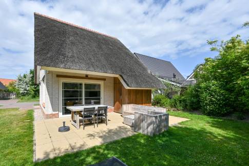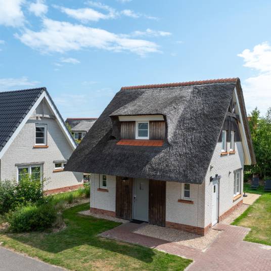 Gelegen op het populaire Beach Resort Nieuwvliet-Bad vind je deze karaktervolle 4 persoons vakantiewoning met een sfeervolle rieten kap. Op een royaal perceel van 309 m², gunstig georiënteerd op het oosten, geniet je hier van rust, privacy én de nabijheid van de zee – het uitgestrekte Noordzeestrand ligt op loopafstand.