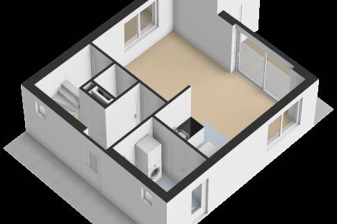 Dankzij de grote raampartijen stroomt het daglicht rijkelijk naar binnen, wat zorgt voor een warme en open sfeer. De woonkamer vormt een mooi geheel met de moderne open keuken, die is voorzien van alle gewenste inbouwapparatuur, waaronder een combi-oven, vaatwasser, koelkast met vriesvak en een inductiekookplaat. Of je nu een snelle lunch bereidt of uitgebreid kookt voor twee: hier is het een plezier om in de keuken te staan.