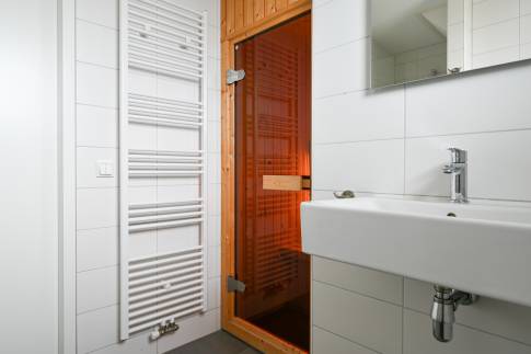 De tweede badkamer is minstens zo comfortabel en compleet. Naast een inloopdouche en wastafel is deze ruimte uitgerust met een heerlijke infraroodsauna. Perfect om na een dag aan zee of een lange fietstocht volledig tot rust te komen.