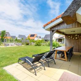 Maak kennis met deze sfeervolle vrijstaande 8-persoons vakantiewoning met karakteristieke rieten kap, gelegen op korte afstand van het Noordzeestrand. Gevestigd op een royaal perceel met noordwestelijke oriëntatie, bevindt deze woning zich op het moderne Beach Resort Nieuwvliet-Bad, dat beschikt over een hoofdgebouw met zwemparadijs en tal van voorzieningen. De woning is comfortabel ingedeeld met vier slaapkamers en drie badkamers, en biedt volop licht, ruimte en luxe.