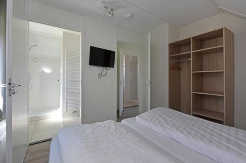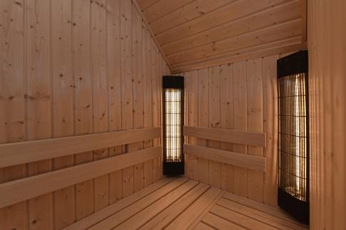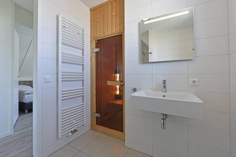 De tweede badkamer is net zo luxe afgewerkt en biedt daarnaast pure ontspanning dankzij de ingebouwde infraroodsauna – heerlijk na een actieve dag buiten.