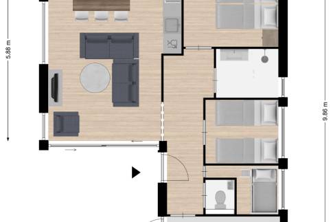 – 3 slaapkamers, 2 badkamers, 1 toilet
