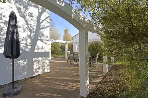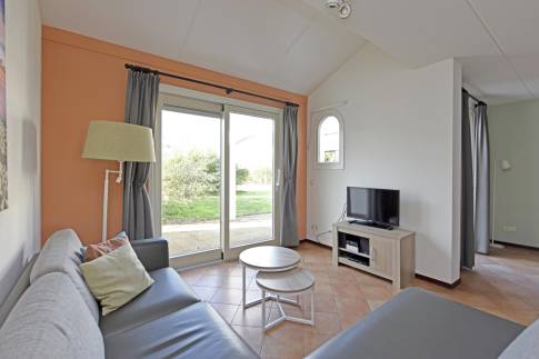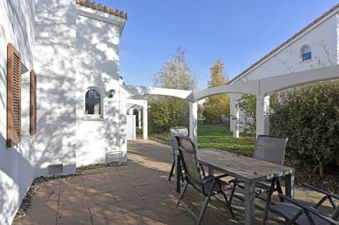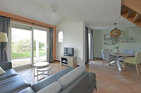 Dankzij de hoekligging aan de rand van het park geniet je hier van extra privacy en ruimte. Buiten nodigen het ruime terras met tuinset en de overdekte veranda uit om te ontspannen in de zon of te genieten van lange zomeravonden in de frisse buitenlucht.
