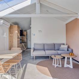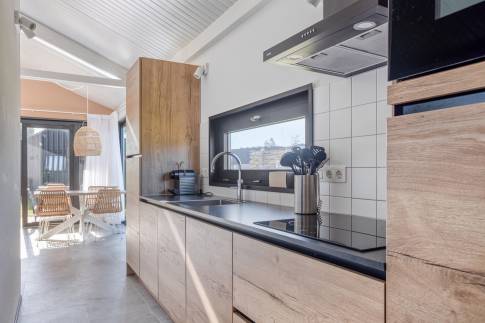 De lichte woonkamer heeft openslaande deuren naar het terras, waardoor binnen en buiten naadloos in elkaar overlopen. De open keuken is volledig uitgerust en biedt alle gemakken voor een ontspannen verblijf. Er zijn twee comfortabele slaapkamers, een moderne badkamer en een apart toilet voor extra privacy.