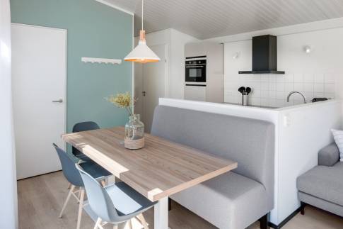 Aan het water gelegen 6 persoons recreatiewoning op Lakeside Resort Brielle. Verrassende leuke vakantiewoning die aan het water ligt. Met een grote keuken, praktische eethoek en fijne zithoek. 3 slaapkamers en 2 badkamers. Deze woning staat op een betonnen vloer. De keuken is open dus u kunt heerlijk contact houden met je medebewoners