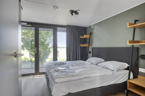 Deze ruime, vrijstaande lodge is geschikt voor 6 personen en is ideaal als comfortabele vakantiewoning. De woning biedt een royale leefruimte met een gezellige zithoek, een grote eettafel en een open keuken. De woning is fraai afgewerkt en beschikt over moderne voorzieningen.
