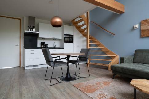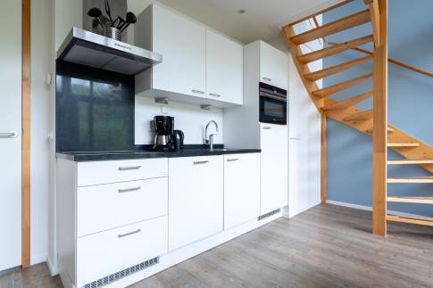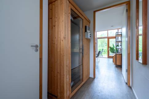 De open keuken is compleet uitgerust met een vaatwasser, combimagnetron, waterkoker en Nespresso-koffiemachine. In de gang bevindt zich een fijne sauna waar u heerlijk kunt ontspannen na een drukke dag. Daarnaast is er een separaat toilet.