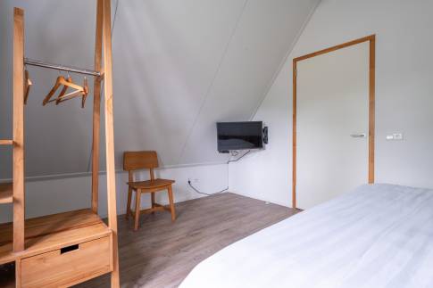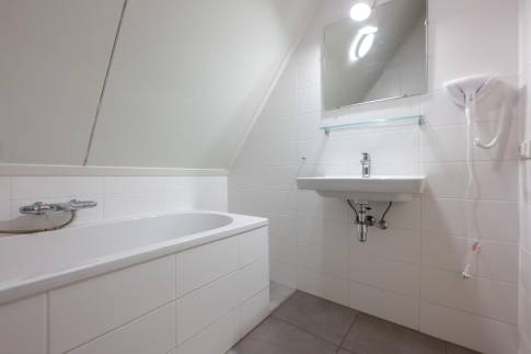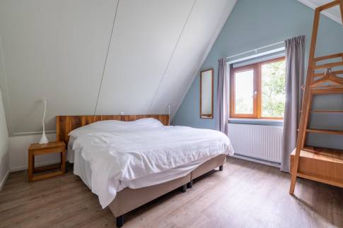 Op de eerste verdieping vindt u een comfortabel tweepersoonsbed met aangrenzend een badkamer. Deze is voorzien van een ligbad, wastafel en douche.