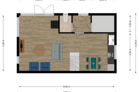 Via de entree bereik je stijlvolle woonkamer met houtkachel en openslaande deuren naar het overdekte terras aan het water. De prachtige, stoere open keuken is o.a. voorzien van een elektrische kookplaat, koelkast met vriesvak, combimagnetron en vaatwasser. Verder vind je op de begane grond een separaat toilet en een inpandige berging met wasmachine. Op de verdieping zijn twee mooie slaapkamers, beide met twee boxsprings en een kast. Vanaf hier heb je een schitterend uitzicht over het water en de natuur. Verder heb je boven de badkamer met een inloopdouche met sunshower, wastafel en tweede toilet en een ruime sauna. Kortom: volop luxe in een waterrijke omgeving!