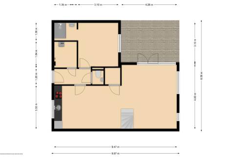 Afmetingen: Binnen: 78m2 Buiten: 1m2