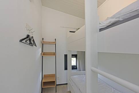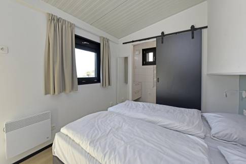 De lodge beschikt over een slaapkamer met twee eenpersoonsbedden en een eigen badkamer en suite met inloopdouche. Daarnaast is er een tweede slaapkamer met stapelbed en een gezellige slaapzolder, bereikbaar via een trappetje, ingericht met twee extra eenpersoonsbedden. Vanuit de woonkamer is de tweede badkamer met inloopdouche toegankelijk. Verder is er een separaat toilet aanwezig.