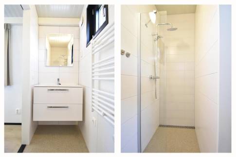 De woning heeft twee moderne badkamers met inloopdouche, wastafelmeubel en designradiator. Dankzij de ramen zijn ze licht en fris.