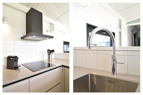 De hoekkeuken is slim ingedeeld en van alle gemakken voorzien, inclusief een kokend waterkraan. Perfect voor een snelle kop thee of een uitgebreid diner.
