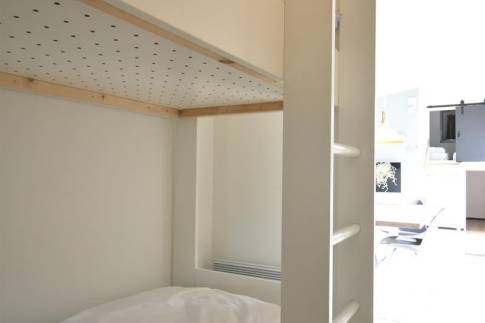 De hoofdslaapkamer beschikt over een comfortabel boxspringbed en een eigen badkamer. Daarnaast is er een slaapkamer met stapelbed en een speels verhoogde slaapruimte met twee matrassen en handige bergruimte eronder.