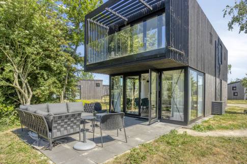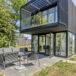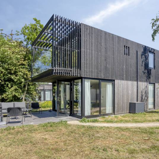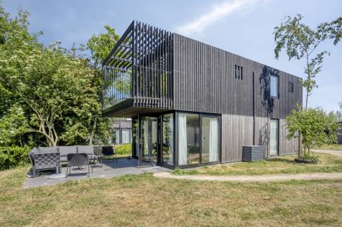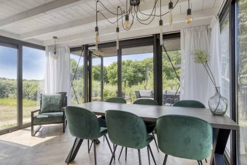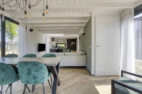 Deze charmante woning aan de rand van een groen vakantiepark combineert ruimte, licht en luxe in een ontspannen setting.