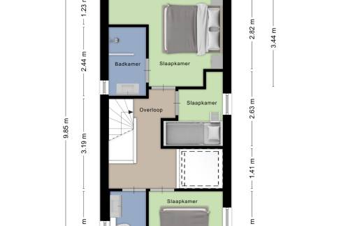 Op de verdieping vind je drie ruime slaapkamers, waarvan één met een eigen balkon dat uitzicht biedt op de natuurrijke omgeving. Twee moderne badkamers – waarvan één en-suite – maken deze woning extra comfortabel en ideaal voor gezinnen of samen reizende stellen.