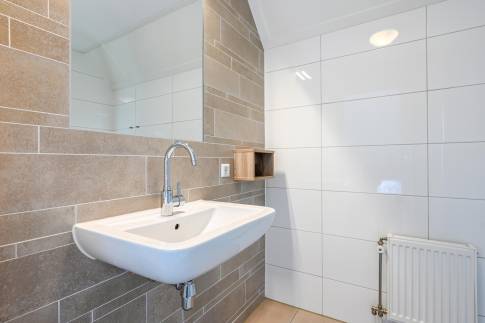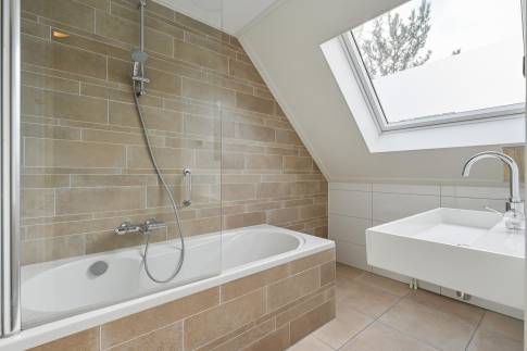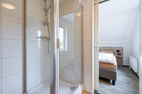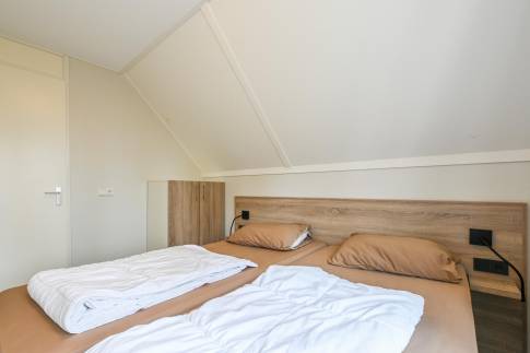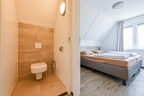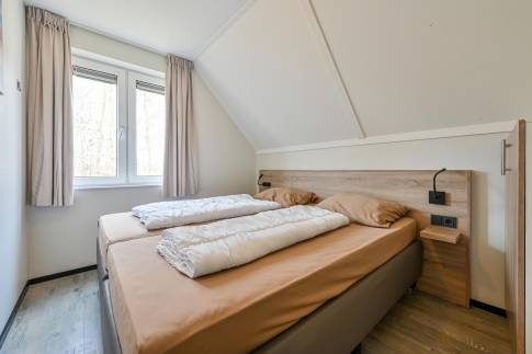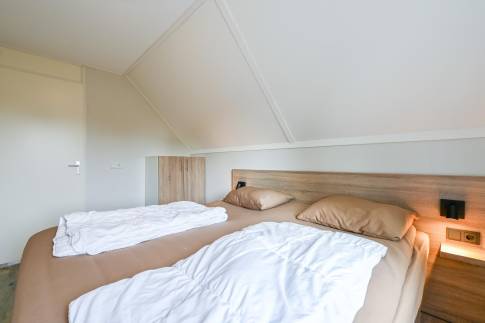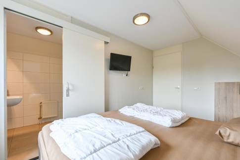 Op de eerste verdieping bevinden zich drie comfortabele slaapkamers. De master bedroom beschikt over twee 1-persoons boxsprings met een softtopper, een eigen tv en een en-suite badkamer met douche en wastafel. De overige twee slaapkamers, beide voorzien van 1-persoons boxsprings, delen een tweede badkamer met ligbad en wastafel. Daarnaast zijn er op zowel de begane grond als de eerste verdieping aparte toiletten voor extra gemak.