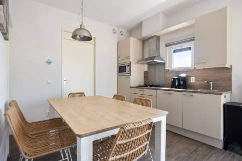 In de keuken vindt u onder andere een vaatwasser, combimagnetron en koffiepadapparaat.