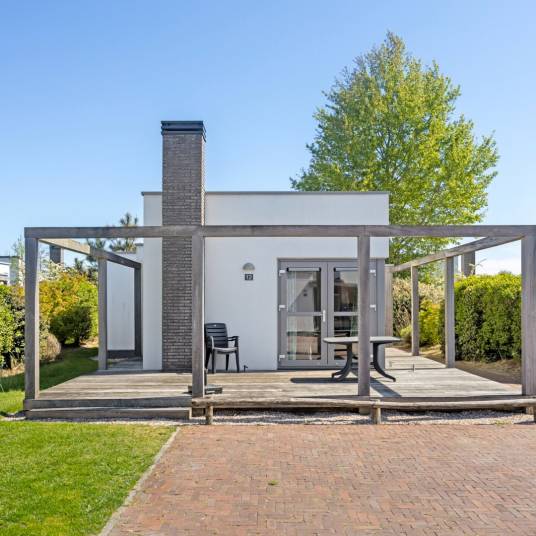 Op het populaire Strandpark Duynhille, op loopafstand van het strand, staat deze fraaie 6 persoons vakantiebungalow op een perceel van 340 m² eigen grond.