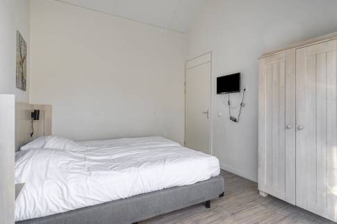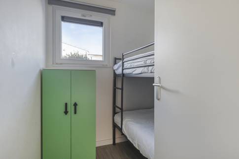 De derde slaapkamer is voorzien van een stapelbed en praktisch ingericht met veel opbergruimte; perfect voor gezinnen met jonge kinderen.