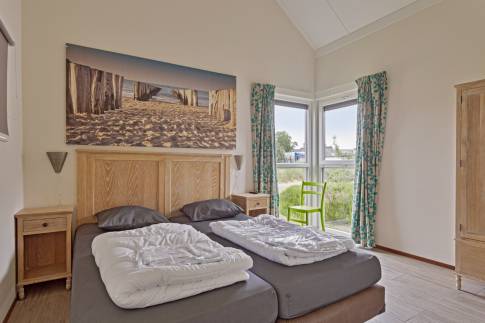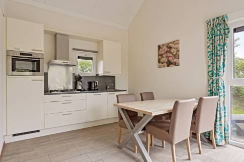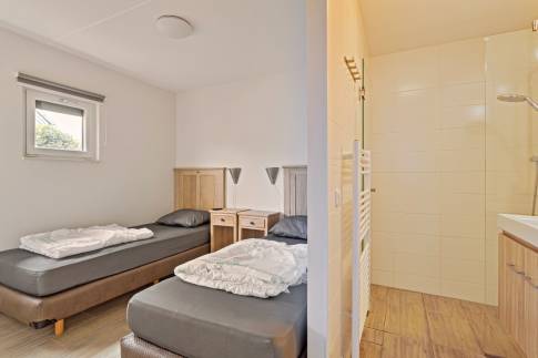 Deze 4-persoons woning is ideaal gelegen aan het begin van het park op een ruim perceel van 391 m² eigen grond, waardoor alle faciliteiten binnen handbereik zijn.