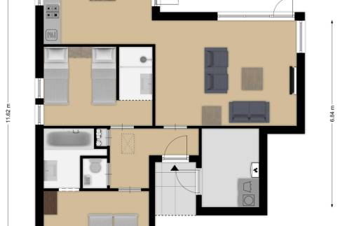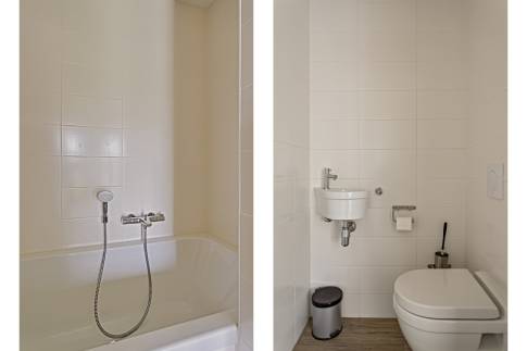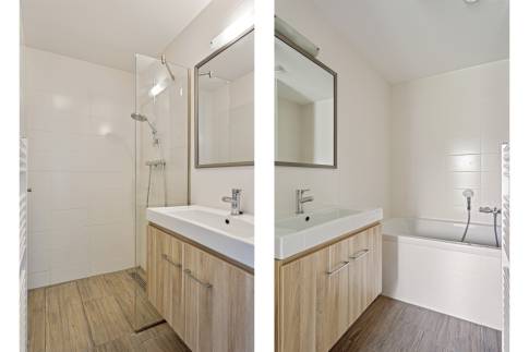 De woning beschikt over twee ruime slaapkamers, elk met een eigen badkamer en-suite, wat zorgt voor extra comfort en privacy. Daarnaast is de gehele woning voorzien van vloerverwarming, wat bijdraagt aan een aangenaam binnenklimaat.