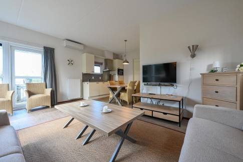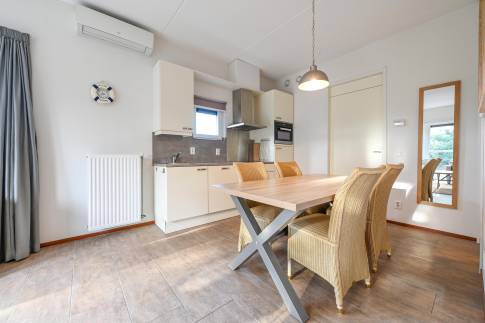 Met drie slaapkamers en twee badkamers, is er voldoende ruimte voor het hele gezin. Uniek op dit park is dat de woning beschikt over twee aparte toiletten. De open keuken is volledig uitgerust voor zowel gemak als stijl.