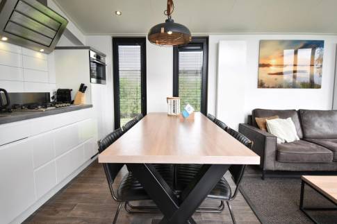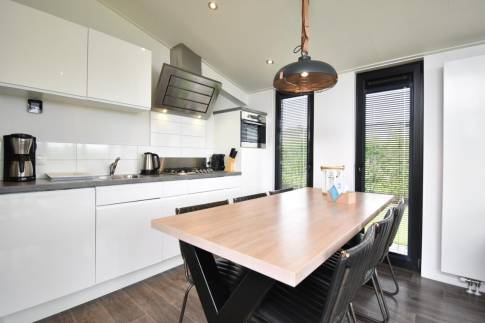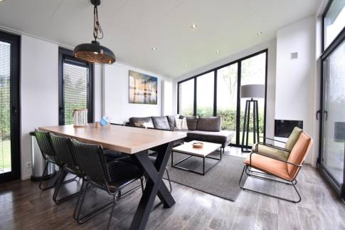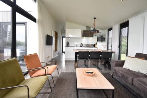 Deze vakantiewoning heeft een ruime woonkamer met grote raampartijen, open moderne keuken, lichte badkamer met grote douche en 3 slaapkamers. In de master bedroom treft u een grote schuifkast aan om spullen in op te bergen. Door de hele woning ligt hoogwaardig vinyl in een warme teint van houtmotief waardoor er een harmonieuze eenheid ontstaat. De woning heeft meerdere terrassen, waaronder 1 met een zonneschermdoek. In de tuin is tevens een zeer royale berging aanwezig.