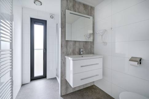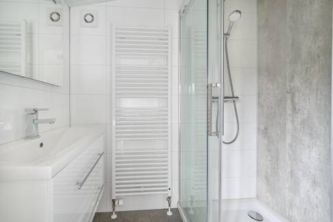 De woning beschikt over drie volwaardige slaapkamers en twee moderne badkamers, waarvan één en suite bij de hoofdslaapkamer. De lichte woonkamer met grote raampartijen en open keuken vormt een sfeervol middelpunt en biedt een prachtig uitzicht op de natuurlijke omgeving. De keuken is modern uitgevoerd en sluit naadloos aan op de rest van het interieur.